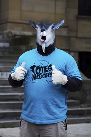 Okay, Totes McGoats. I am so proud of my hometown, or rather, just outside my hometown. Totes is Niagara Falls’s answer to what it takes to get children and millennials fired up about recycling. I understand that what is news/entertaining/worthwhile to me will not appeal to everyone. But, if you don’t appreciate Totes McGoats, you can eat a dick. Look at him. Such little thought and planning…every expense spared. HIs tiny, horrifying head. I can only imagine his laboured breathing and moist human hands reaching out in the dusk. Absolutely the stuff of nightmares, with the added bonus of promoting environmental integrity. Well done Niagara Falls! Stay lazy, stay awesome. So baaaa’, he’s good. Right bang on time to give folks a costume idea, but still fresh enough to be disturbing.